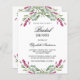 Een witte achtergrond. Versierd met roze lavendelbloemen en eucalyptusgroen. Personaliseer en voeg een naam en feestdetails toe. De naam is geschreven met een handgeschreven stylescript. 1 vel papier = 1 uitnodiging afgedrukt rand tot rand.