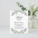 Een witte achtergrond. Versierd met violette lavendel bloemen en eucalyptus groen. Personaliseer en voeg een naam en feestdetails toe. De naam is geschreven met een handgeschreven stylescript. 1 vel papier = 1 uitnodiging afgedrukt rand tot rand.