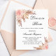 Voor een modern boho stijl vrijgezellenfeest. Een stijlvolle witte achtergrond. Versierd met roos goud en roze bloemstukken, rozen en pampasgras. Personaliseer en voeg een naam en feestdetails toe. Tekst: Liefde is in bloei. 1 vel = 1 uitnodiging afgedrukt rand tot rand.