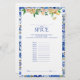 Introductie van het Elegant Mediterranean Lemon Vrijgezellenfeest "Name that Spice" Game! Dit stijlvolle, unieke en leuke spel is de perfecte manier om je vrijgezellenfeest te vieren met plezier en lach! En maak je geen zorgen als je niet weet waar je moet beginnen of als je problemen hebt met activiteiten - we hebben het allemaal bedekt met dit mooie gameontwerp. Met een levendig rand- en hoekontwerp met gele citroenen, lush taupe en stoffige roze rozen, samen met citrusgroen - Om de dingen extra speciaal te maken, bevatten we zelfs prachtige handgeschreven kalligrafie en elegante serif typografie, zodat je je gamegegevens gemakkelijk kunt personaliseren. Geniet van kostbare tijd met familie en vrienden voor deze leuke en luxe activiteiten die zeker de komende jaren herinneringen zullen creëer. De reeks van het uitzicht hier: https://www.zazzle.com/collections/elegant_mediterranean_lemon_floral_bridal_shower-119149910730213409 de ontwerper van het contact voor de aanpassing van producten. Copyright Surridge Design Co. voor Elegant Invites, alle rechten voorbehouden.