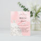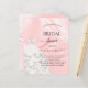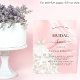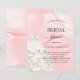 Elegant, klassiek, glamoureus en girale doucheuitnodiging. Blush roze satin, zijde print als achtergrond versierd met een witte trouwjurk.