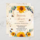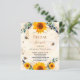 Een witte en gouden waterkleurige achtergrond met versieringen van zonnebloemen, hommels, eucalyptusgroen, gouden bladeren en faux goudglitterstof. Pas een naam en partijdetails aan en voeg deze toe.