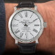 Een presentatiegeschenk voor de aanbiddende meester van een vrijmetselaarsloge. Dit geschenkhorloge is gemaakt met de datum van de wijding van de vrijmetselaar. Een polshorloge van een metselaar die de naam van de Aanbiddende Meester shows, evenals zijn vrijmetselaarsloge en het jaar dat hij de Grootmeester werd. De stijl van de uurnummers is in Romeinse cijfers op een witte achtergrond. Een aantrekkelijk presentatiegeschenk voor een aanbiddelijke Meester.