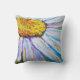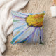 U zult genieten van dit kussen met close-up detail van een geschilderde madeliefje in felle kleuren van geel, sinaasappel, paarse, blauw en groen. Het midden van het madeliefje werd geschilderd op doek met mosterdzaad (zie Matt. 17:20: "...met geloof zo klein als een mosterdzaadje...niets zal voor u onmogelijk zijn") om hoop te brengen aan allen die het bewonderen.