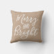 Vrolijk en helder script handschrift | Vakantie Sierkussen in kraft en wit. Moderne boerderij typografie ontwerp door Blackberry Boulevard "Merry and Bright" geschreven in een wit script lettertype op een kraft kleur achtergrond. Andere kleuren beschikbaar in de winkel. Perfect accentkussen voor uw vakantiehuisinrichting.