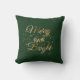 Donkergroene achtergrond met "Merry and Bright" in gouden folie letters