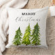 Kerstbomen waterverf gooien kussen. Vrolijk kerstfeest, groen, feestelijk, , retro kussen.