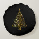 Vrolijk kerstboomsterren zwart Gold Shiny Chic Rond Kussen