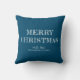 Merry Christmas Custom Family Name Modern Eenvoudig Diep Blauwgroen Sierkussen. Gemakkelijk te bewerken.
