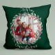 Vrolijk kerstfeest familie foto Groen Sierkussen. Personaliseer Kussen met foto's van uw keuze en creëer perfect kerstcadeau!