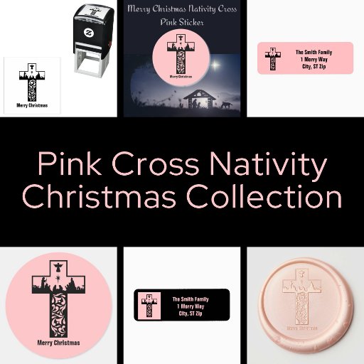 Merry Christmas Pink Cross Nativity ChristmasOntworpen door Suzanne Hein