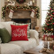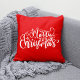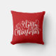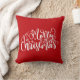 Kute kussen in landelijke boerderijstijl. "Vrolijk kerstfeest" citaat tekst geschreven als kalligrafie woordvoerder. Vind meer overeenkomende objecten in mijn Collectie "Kerstmis in rood, blauw en wit"