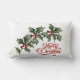 Decoratief Sierkussen met sms Merry Kerstmis en een Heilige Groene Boom Tak met Rode Berries.