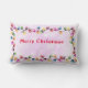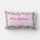 Dit mooie baby roze gooi kussen met kerstverlichting, sneeuw en vrolijk kerstfeest