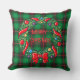 "Merry Christmas" groen geruite Sierkussen met een feestelijk versierde krans. Ontworpen door Inge Lewis. Geweldig cadeau idee voor familie of vrienden dit vakantieseizoen. Vind meer overeenkomende objecten in de winkel op ingeinc.com.
