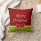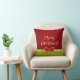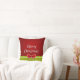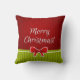 Feestelijk kussen voor Kerstmis met rood & groen gestreept patroon en "Vrolijk kerstfeest!" typografie in het midden.