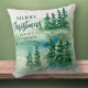 Vrolijk Kerstmis Groene Bos Bomen Gift Sierkussen. Personaliseer dit elegante moderne kerst gooi kussen met uw aangepaste bericht. Een perfect cadeau voor jezelf, familie en vrienden.