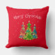 Vrolijk Kerstmis decoratief rood kussen met grillige bomen en sneeuwvlok. Perfect voor het vieren van de feestdagen. Maakt een geweldig cadeau voor familie en vrienden. Ontworpen door Inge Lewis. Vind meer overeenkomende objecten in de winkel op ingeinc.com