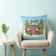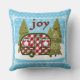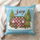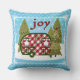 Een zoete camper trailer zit op een witte sneeuw bedekte helling. De feestelijke camper is rood en wit gecontroleerd. Een vakantiekrans is vastgespeld aan de deur. De twee ramen zijn versierd met rode gordijnen en groene en witte luifels. Elk raam heeft een bloembak gevuld met Poinsettias en hulst. Groene dennenbomen omringen de camper, waarvan er één is versierd met snaren van lichte en kleurrijke vakantie ornamenten. Een rode ster zit boven op de versierde boom. De achtergrond is een lichtblauwe lucht gevuld met sneeuwvlokken. Voeg wat extra Vrolijk toe aan je vakantieseizoen met dit bijzonder schattige feestkussen. Het is verkrijgbaar in verschillende maten en materialen.