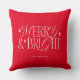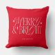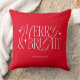 Klassiek en vintage kerst thema kussen met typografie tekst die zegt "Merry & Bright" met sterren.