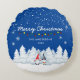 Vrolijke kerst besneeuwde kabouters rond kussen