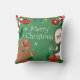 Dit is een feestelijke vakantie ontwerp shows een sneeuwman en peperkoek man genieten van elkaar gezelschap. De groene achtergrond is versierd met sneeuwvlokken en snoepstokken en ornamenten. U kunt uw kussen met het jaar te gedenken.