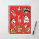 Vrolijke Mid-Century Christmas Art op rode achterg