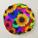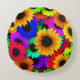 Vrolijke verzameling kleurrijke zonnebloemen rond kussen