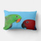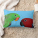Kussen op de kuil gooien met een gezelschapspapegaai van Scarlet's Feathers met een mannelijke en vrouw eclectus parrot