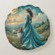 Vrouw in Turquoise jurk en Sable Rough Collie Rond Kussen