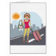 Dit ontwerp is een vrouw met een koffer. Ze staat aan de zijkant van de weg met haar roze koffer en houdt ook een handtas vast. Ze is klaar om ergens heen te gaan. Deze vrouw met een kofferontwerp ziet er geweldig uit