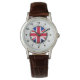Vrouwen Britse vlag Classic Bruin Lederen Horloge