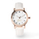 Creëer Uw eigen aangepaste, gepersonaliseerde, stijlvolle stijlvolle, stijlvolle faux gouden zwart-wit uren, monogram, dames roos gouden retro look stijl wit lederen bandhorloge. Gewoon typen in jouw naam / monogram / initialen, aan te passen. Maakt een geweldig cadeau, voor verjaardag, afstuderen, moederdag, kerst, feestdagen, bruiloft, huwelijksverjaardag, Valentijnsdag, en meer, voor uw dierbaren, moeder, bruid, vrouw, zus, oma, vriendin, dochter, bruidsmeisjes, bruidsmeisje, familie en vrienden.