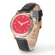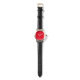 Vrouwen SQ Zwart Leren Strap Wit Tekst Horloge