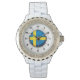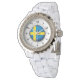 Vrouwen Zweden Vlag Strass Wit emaille horloge