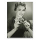 glimlachende vrouw die speelkaarten in studio, (B&W), portret houdt | George Marks | AssetID: 57520357