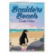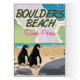 Boulders strand Zuid-afrikaanse cartoon reisposter. Boulders stranden pinguïn cartoon.