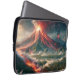 Een majestueuze vulkaanuitbarsting domineert het tafereel, met levendige rode lava die langs de hellingen stroomt en een rookpluim die de lucht in stroomt. Het omringende landschap is weelderig van groen, contrasterend met de vurige uitbarsting.