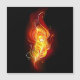 Helder pauwenveer gemaakt van vuur en vlammen op een zwarte achtergrond.