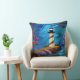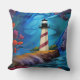 Mooie rode en witte gestreepte vuurtoren op een rotsachtige buitenkant omgeven door bloemen en blauw water/hemel AI Art gemaakt door minx267