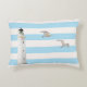 Klassieke lichtblauwe en witte nautische strepen met vliegende meeuwen en een witte vuurtoren. Een klassiek maritiem kussen voor uw zomerhuis of strandhuis!