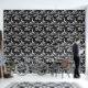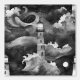 Waterverf grote oceaangolven raken de zee oever van de vuurtoren met volle maan in grijswaarden.