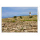 Waterverf vuurtoren met bloemen en bomen in bloesems op archeologisch gebied in Paphos, Cyprus