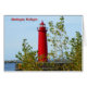 Een mooie vuurtoren van Muskegon is omhuld in herfstbladeren. Deze foto maakt een geweldige notecard.