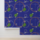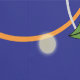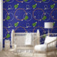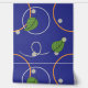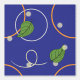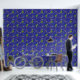 De gloeiende vuurvliegjes dansen onder drijvende bladeren boven een diepe blauwe achtergrond. Oranje en zilverringen creëer een effect als gestileerde rimpels om de basis een waterachtig gevoel te geven.