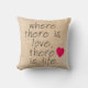 Cool homespun of burlap kijk, zonder het krasse gevoel! Deze nepkussen hebben een licht geweven en verouderd uiterlijk, met de woorden WAAR ER VERLIES IS, ER IS LEVEN en een helder roze hart. De achterkant heeft dezelfde textuur die er alleen uit ziet met het roze hart. Voel vrij om het CUSTOMIZE hulpmiddel van IT te gebruiken om het even welke tekst van uw toe te voegen. Deze geweldige kussen zouden elk land, elke stijl uit de Parijs, elk huisje of elk boerderijmodel verbeteren. Kies uit een vierkant kussen van 20 x 20 inch of een rechthoek van 13 x 21 inch op bolster. Onze kussens zijn gemaakt van katoen van 100% klasse A en zien er in elke kamer geweldig uit, van de slaapkamer tot de woonkamer, de huiskamer of de voorste veranda zingelen! De aanschaf van kussen op maat, geproduceerd door alleenstaande moeders die duurzaam in dienst zijn in de VS, draagt bij aan het doorbreken van de armoedecyclus voor alleenstaande moeders en hun kinderen, terwijl het er goed uitziet in uw huis! Design van Scarebaby Design, ondersteund door de Zazzle-garantie.