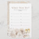 (Kies MATT papierafwerking - NIET halfglans - om op te schrijven.) Voeg een leuke en gedenkwaardige activiteit toe aan je vrijgezellenfeest met het 'Where Were We?'-spel, waarbij gasten de locaties van foto's met de bruid en bruidegom raden. Dit spel, versierd met delicate waterverf bloemen en sierlijke parels, brengt gelach en plezier aan uw feest, perfect als aanvulling op de Elegant Parels en Prosecco Vrijgezellenfeest Collectie.