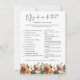Natuurlijk is het niet nodig dat je spelletjes speelt in het vrijgezellenfeest, maar overweeg dit: je gaat een groep van alle leeftijden hebben, en de meeste gasten hebben elkaar waarschijnlijk nog nooit ontmoet voor het feest. Mixen in een paar van deze klassieke ijsspellen is een perfecte manier om het vrijgezellenfeest te breken. Onze dubbelzijdige spelkaarten zijn een elegante en praktische aanvulling op elke douche. Deze professioneel ontworpen kaarten zijn snel aanpasbaar. SLEUTEL 1) Iets Ouds, Nieuw, Geleend en Blauw D) Vertegenwoordigt het verleden van de bruid en de gelukkige toekomst van het paar 2) De bruid draagt een sluier H) Bang dat boze geesten jaloers zijn op haar geluk 3) Het dragen van de bruid over de drempel I) Bescherming tegen boze geesten door de zolen van haar voeten. 4) Brekend glas J) Het onthult hoeveel jaren het paar zal trouwen. 5) Elkaar zien voor de bruiloft L) Een kans om hun gedachten over de bruiloft te veranderen 6) Het gooien van de kousenband A) Om de maffia af te leiden 7) Dienen van een bruidstaart B) Gasten zouden stukken onder hun kussen plaatsen 8) Het hebben van een bruidsfeestje G) Verwarren van verdoofde vrijers en slechte mensen 9) Het dragen van een witte jurk E) Geeft rijkdom 10) Het gooien van het boeket K) Om boze geesten af te weren 11) Het bepalen van de "Ring" vinger F) Bevat de ader die naar het hart leidt 12) De vader die de brug loopt Eigendom van Voeg uw aangepaste formulering toe aan dit ontwerp met behulp van de "Edit this design sjabloon"-vakken aan de rechterkant van het item, of klik op de blauwe knop "Customize it" om de tekst te schikken, de lettertypen en kleuren te wijzigen en ook extra informatie of afbeeldingen aan dit ontwerp toe te voegen. Klik op "Verder aanpassen" om de volledige bewerkingsopties te openen. Als u coördinerende punten nodig hebt, (bedankkaarten, enz.) gelieve me voor een douaneorde te contacteren. **** Voor aangepaste aanvragen die u nodig hebt mijn hulp bij, plaats deze goederen niet in uw winkelwagen. In plaats daarvan kunt u mij uw aanvraag via e-mail sturen naar lauralise@iyhtvdesigns.com Er wordt een link naar uw merchandise per e-mail naar u verzonden zodra het object beschikbaar is. U kunt deze link gebruiken om uw bestelling te plaatsen. Houd rekening met maximaal 48 uur.
