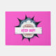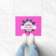 Heldere roze deurmat met een grote witte haai en de woorden KEEP UIT! U kunt de formulering wijzigen om uw eigen naam, gezegde of letters toe te voegen. U kunt de roze achtergrondkleur ook veranderen in wat u maar wilt.