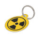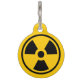 Rond waarschuwingsbord voor radioactiviteit. Vectorpictogram met aanpasbare kleuren. Aangepaste achtergrond. Aangepaste tekst aan de achterzijde.